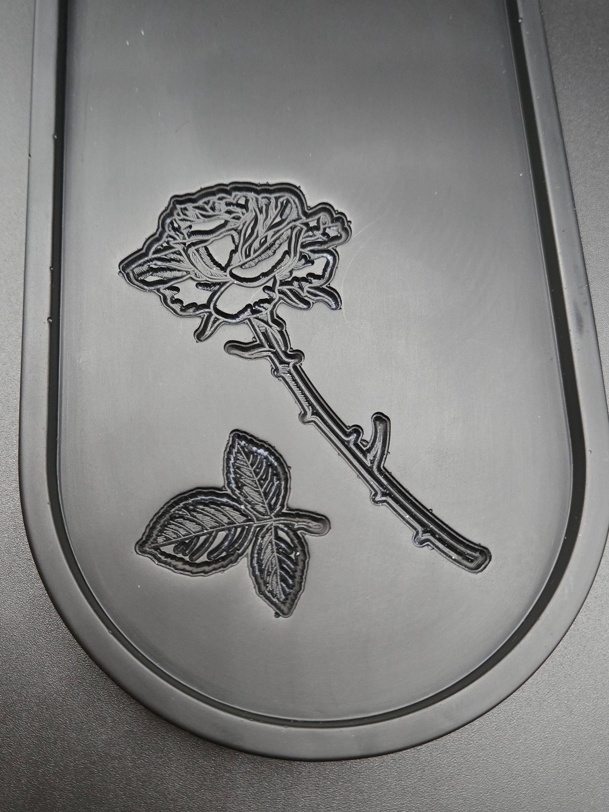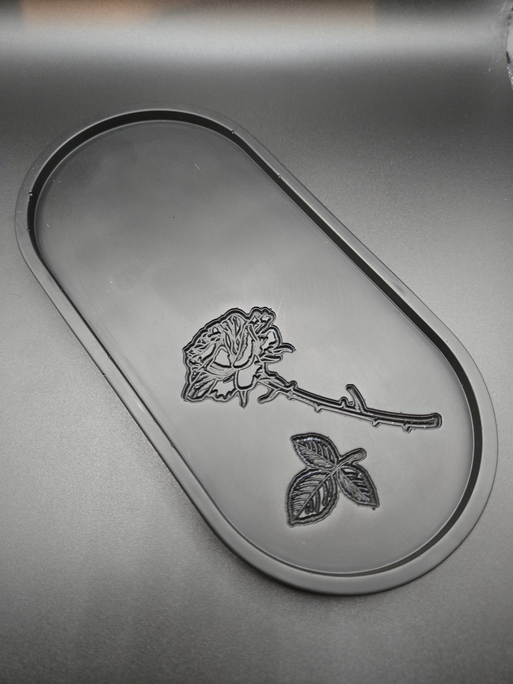 Hand crafted out of Jesmonite, this oval tray with inset rose detail is the perfect trinket dish.